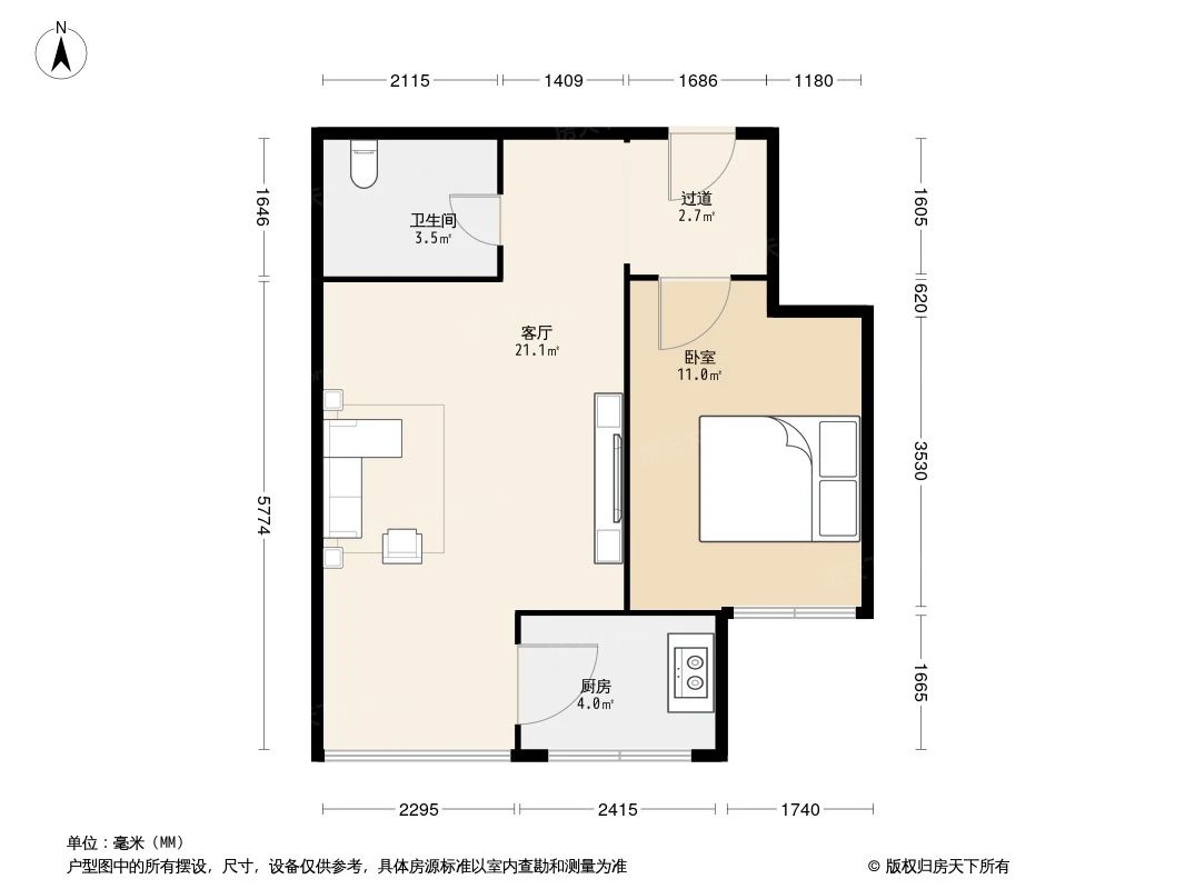户型齐全,主打户型方正,明厨,客厅朝南,主卧朝南一居
