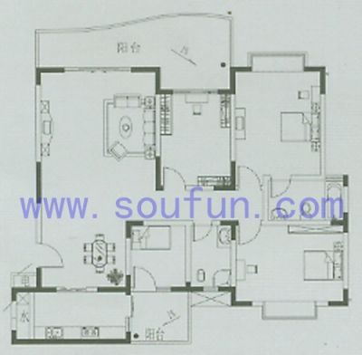 户型齐全,主打明厨,明卫,客厅朝南,双阳台,双卧朝南三居