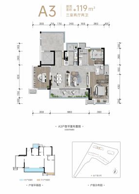 户型齐全,主打全明格局,户型方正三居