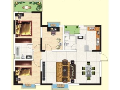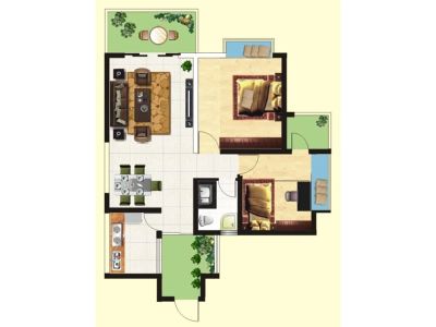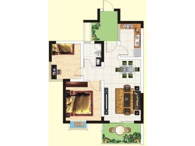 户型齐全,主打户型方正,双阳台,主卧朝南二居