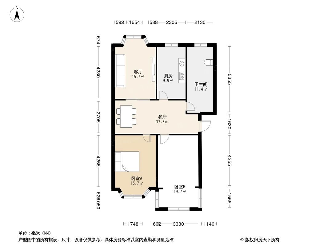 户型齐全,主打户型方正,明卫,明厨,客厅朝南三居
