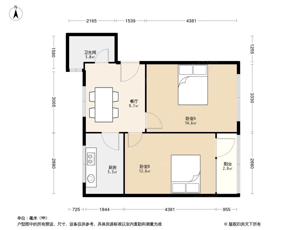 户型齐全,主打户型方正,明卫,明厨二居