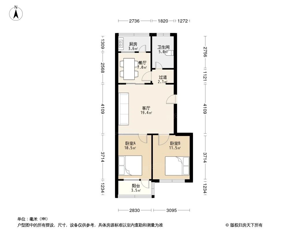 北苑街办宿舍(北苑街办家属楼)户型主要有82平-82平的户型方正,明卫,明厨,主卧朝南的二居 。