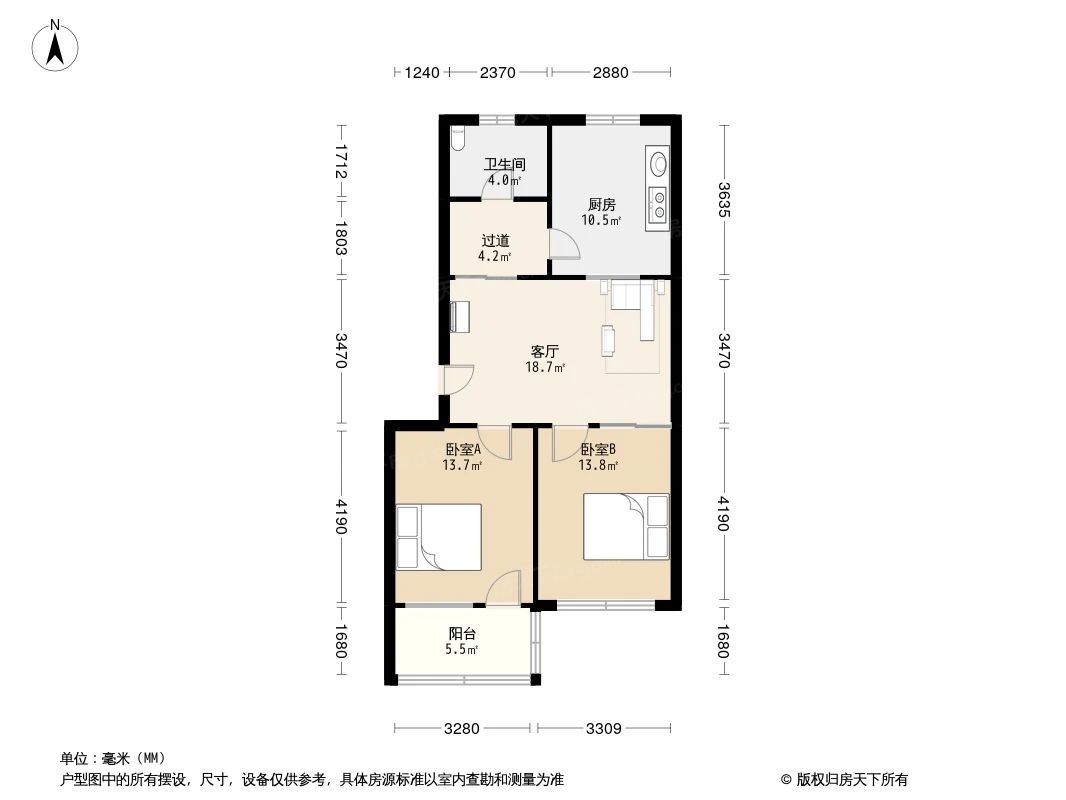 户型齐全,主打户型方正,明厨,明卫,双卧朝南,主卧朝南二居