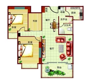 168万 96.56㎡ 3室2厅 南北