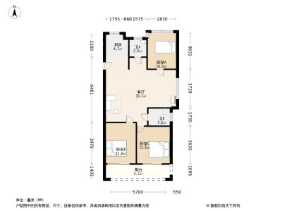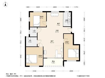 177万 92.44㎡ 3室2厅 南北