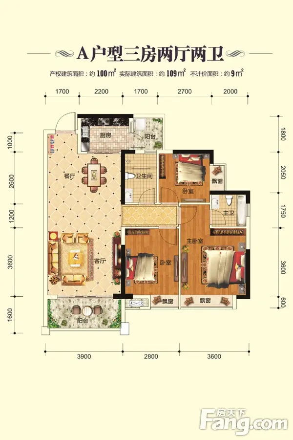 户型齐全,主打南北通透,全明格局,客厅朝南,厨卫不对门,干湿分离,独立餐厅,双阳台三居