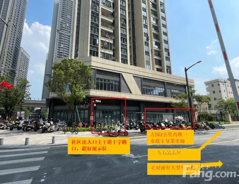 社区出入口,直接面对佳兆业本小区2000左右稳定住户,客源基础有保障。 写字楼正对面,拥有白天办公人群强劲消费力,可做早中晚餐,咖啡奶茶、便利店等生意。 菜市场邻铺,共享菜市场带来天然高频次消费人流,消费目的性强。 城中村人流,20内覆盖大型城中村居民,人群广泛,消费层次多样。