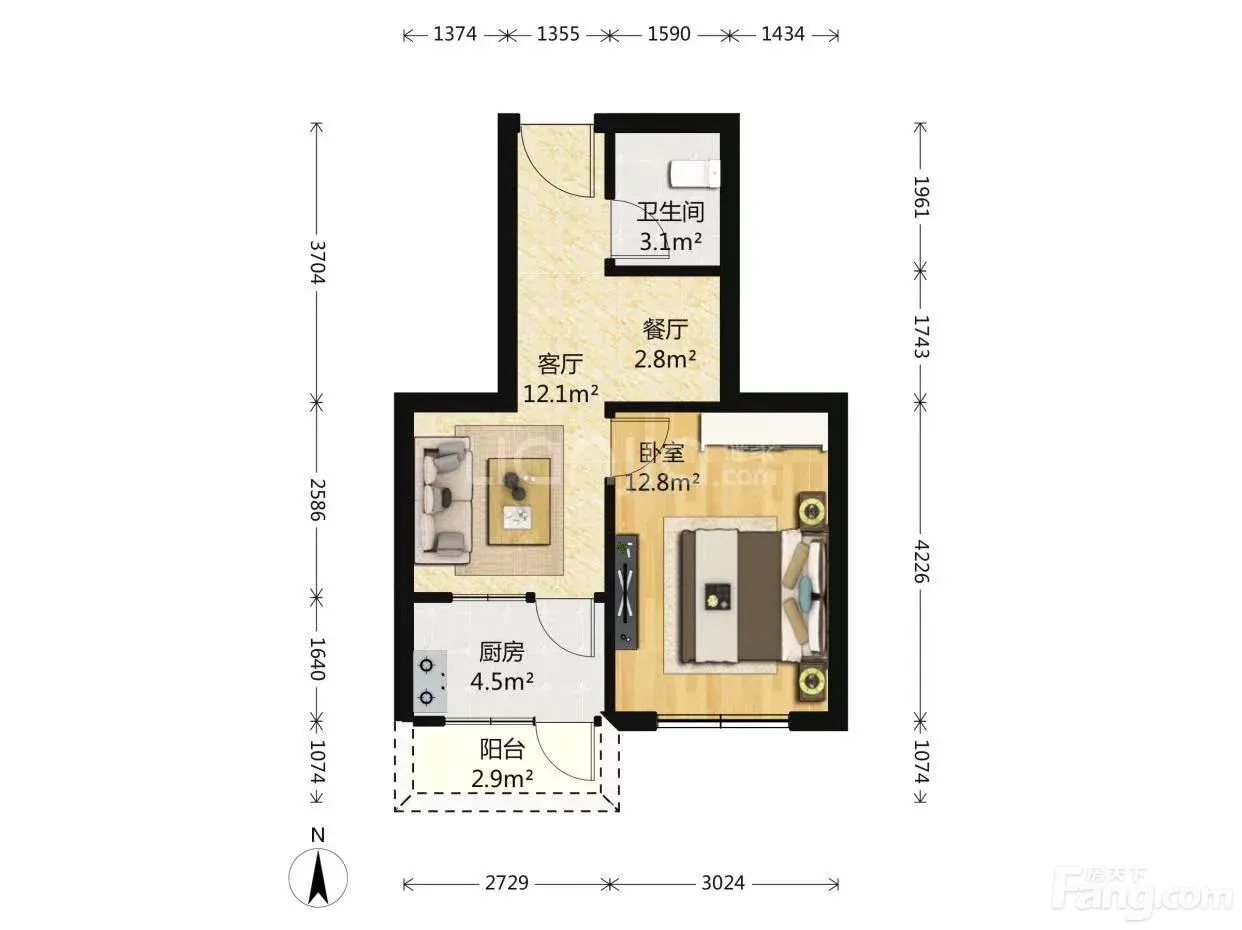 大兴旧宫清逸西园 1室1厅 48.37㎡ 3300元/月