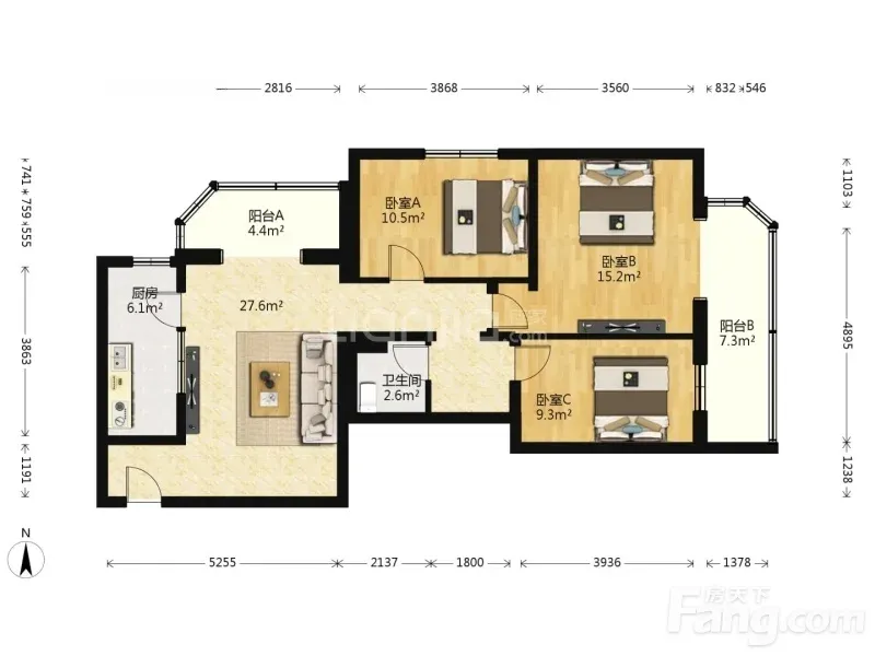朝阳工体吉庆里 3室1厅 107.74㎡ 14500元/月