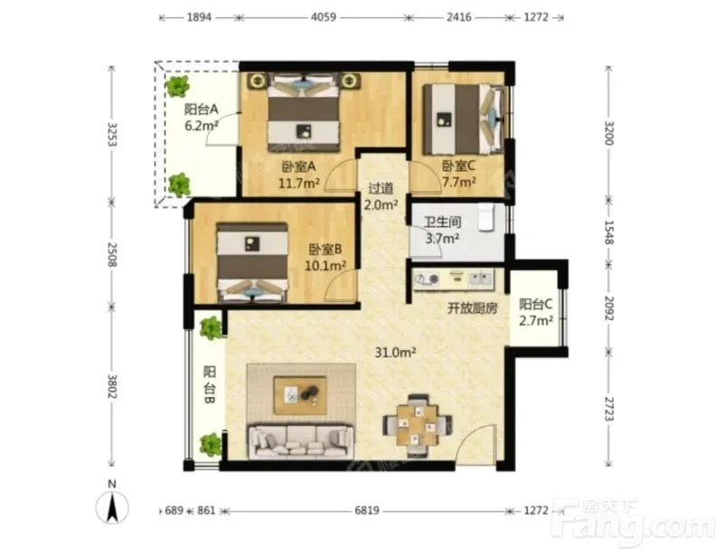3室1厅1卫