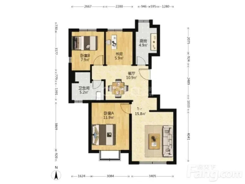 大兴亦庄和成璟园93平米整租 3室2厅1卫