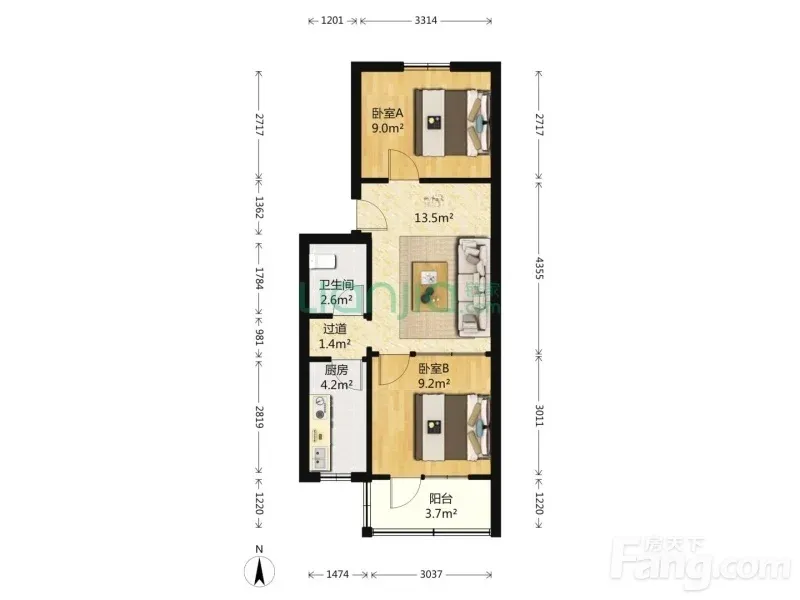 门头沟滨河月季园东里 2室1厅 57.75㎡ 3000元/月