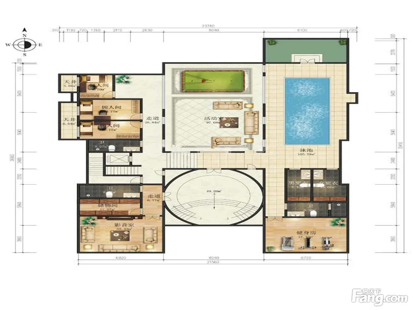 财富公馆!单层面积400平米,带电梯,游泳池,会所,接待均可
