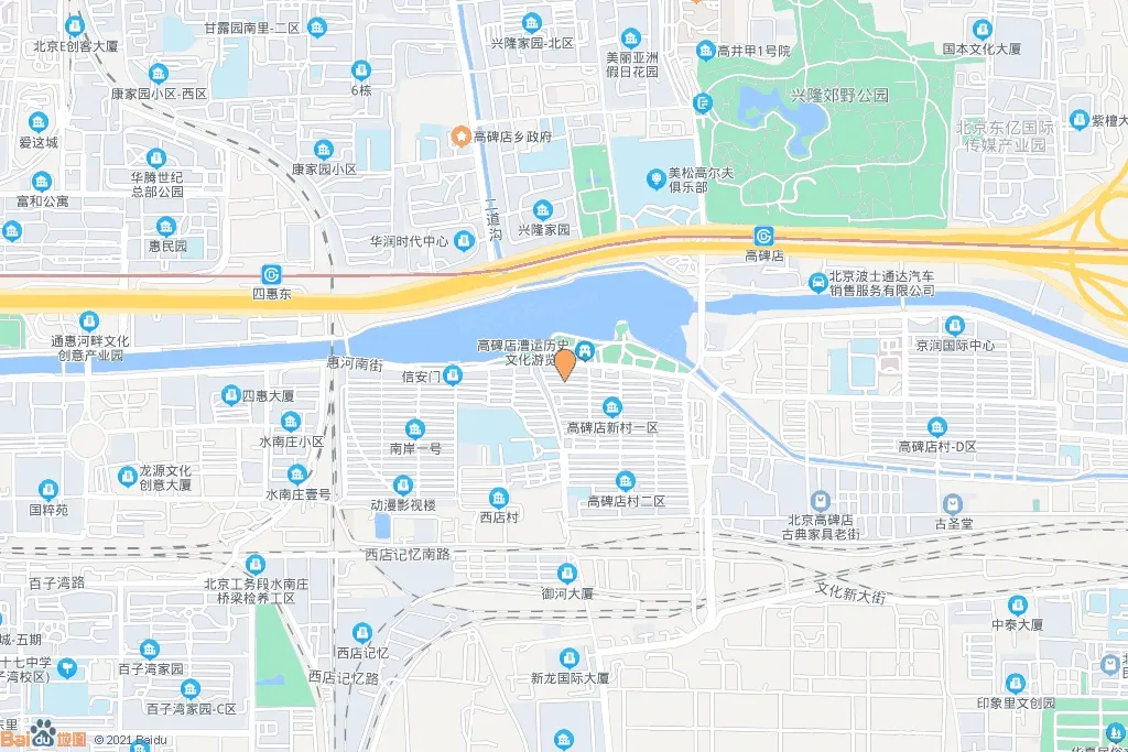 四惠高碑店产业园位于北京市东长安街延长线的高碑店地区,距地铁四惠站和四惠东站仅200米,京杭运河源头的通惠河南岸。项目西接CBD商圈,东至高碑店村古旧家具街,南侧两广路,北依通惠河及京通快速路,距国贸仅2公里。园区是以商业、集团总部基地为主的大型综合型园区,配套有餐饮(主题餐厅、私房菜)、休闲娱乐(KTV、酒吧、温泉洗浴)、国粹精品(古玩字画、珠宝玉器、、钻石),以及酒店等。 园区由东至西沿通惠河水岸1.7公里,园区占地840亩,总建筑面积20余万平米,6千个车位,其中绿化面积23.2万平方米,水系1.2万平米。企业总部基地:瑞银国际银行、阳光矿业股份有限公司、中国地勘公司、中信等
