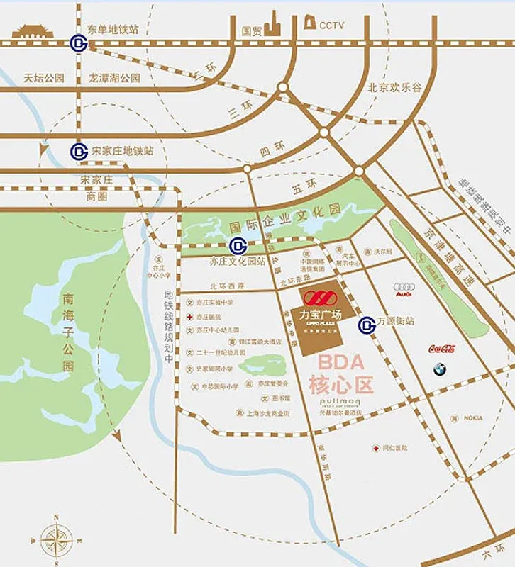 周边配套 商业:力宝商场,沃尔玛山姆会员店、大族广场、7fresh、亦庄创意生活广场等 医疗:北京亦庄同仁医院、安贞医院分院、通州第二医院 银行:中国建设银行、北京银行、中国农业银行、工商银行、招商银行 公园:南海子公园、博大公园、旧宫城市森林公园 其他:中国邮政,朝林松源酒店、丰大国际酒店,格兰云天酒店,兴基铂尔曼酒店