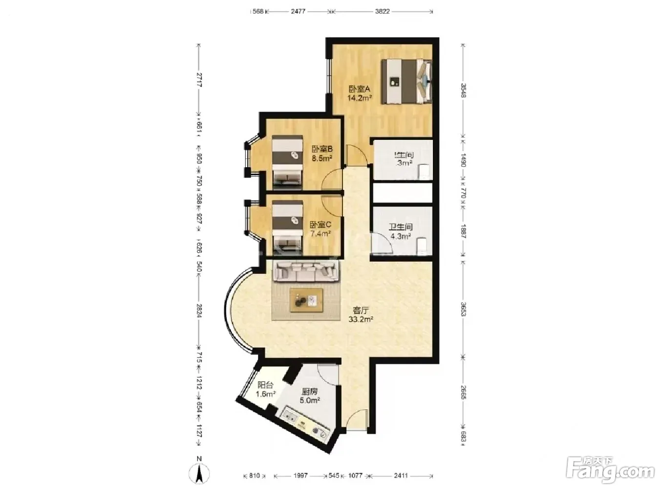 3室1厅2卫