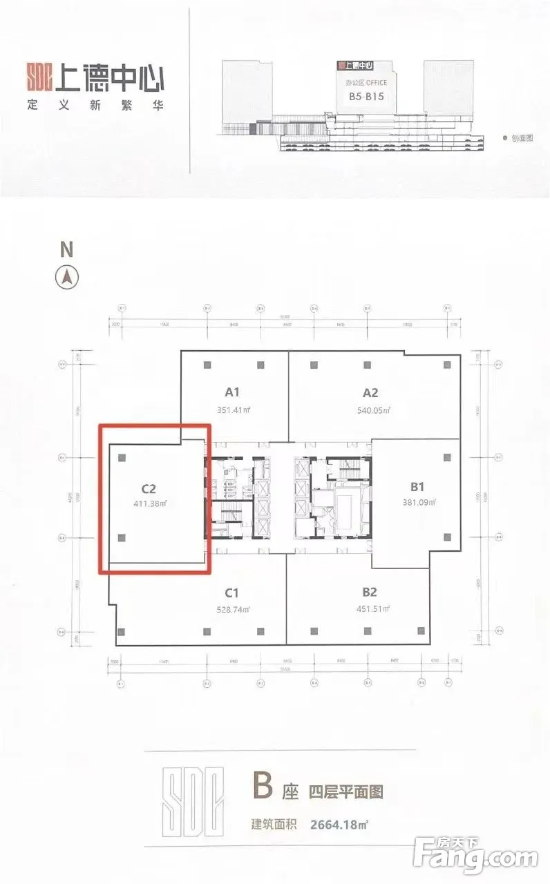 1-5层为商场,6-16层为办公 绿化率 30% 标准层高4.2米 交付状态网络地板,白墙,可根据需求改动 电梯5客1货梯 玻璃幕墙不影响采光,幕墙采用三玻两中空窗户可开 车位600/月临停6/,地下三层(配充电桩车位85个,含快充,慢充,特斯拉专用)