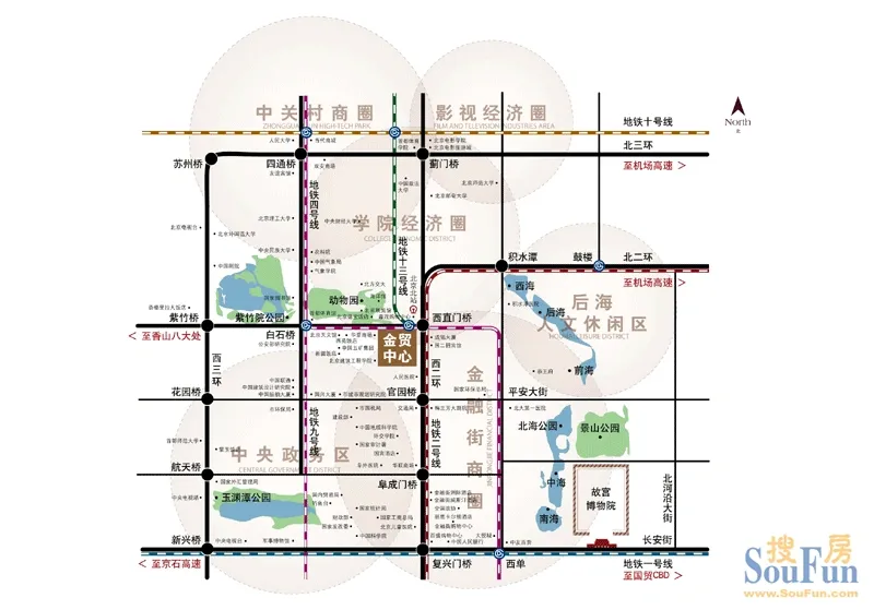 地铁西直门3轨交汇(地铁2号线、4号线和13号线),还有70 多条公交线路