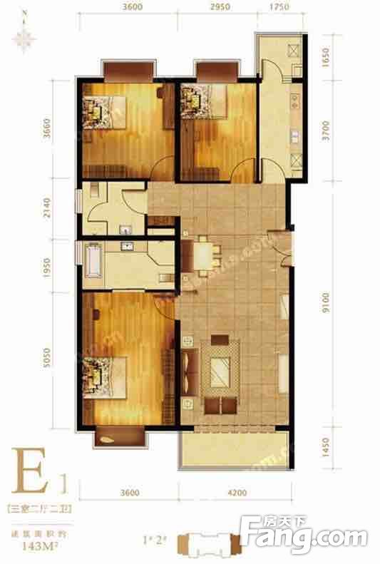 第三区二期,南北通透三室二厅二卫,143平,卫生间带窗户