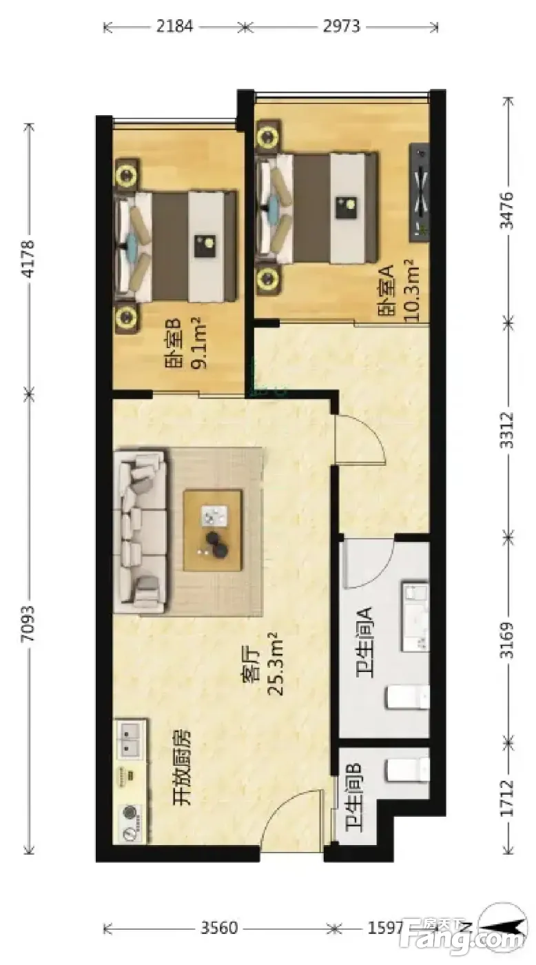 2室1厅2卫