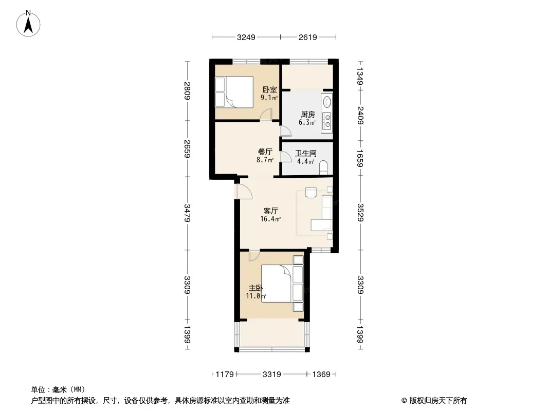 • 房源描述:整租85平米2室1厅1卫,精装修,南北朝向采光好。小区绿化率高,容积率低,环境舒适。家电齐全,包括冰箱、电视、洗衣机等,可做饭,智能门锁安全便捷。小区内有停车位,适合自驾出行。位于昌平县