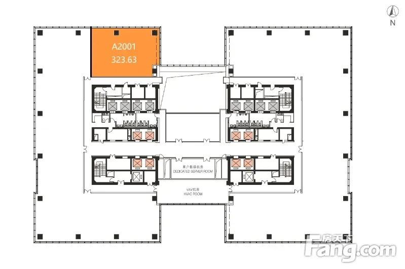 财源国际 A座 20层 323.63㎡ 东、北双面采光,视野开阔 精装交付 5个房间+2个功能间+8个工区