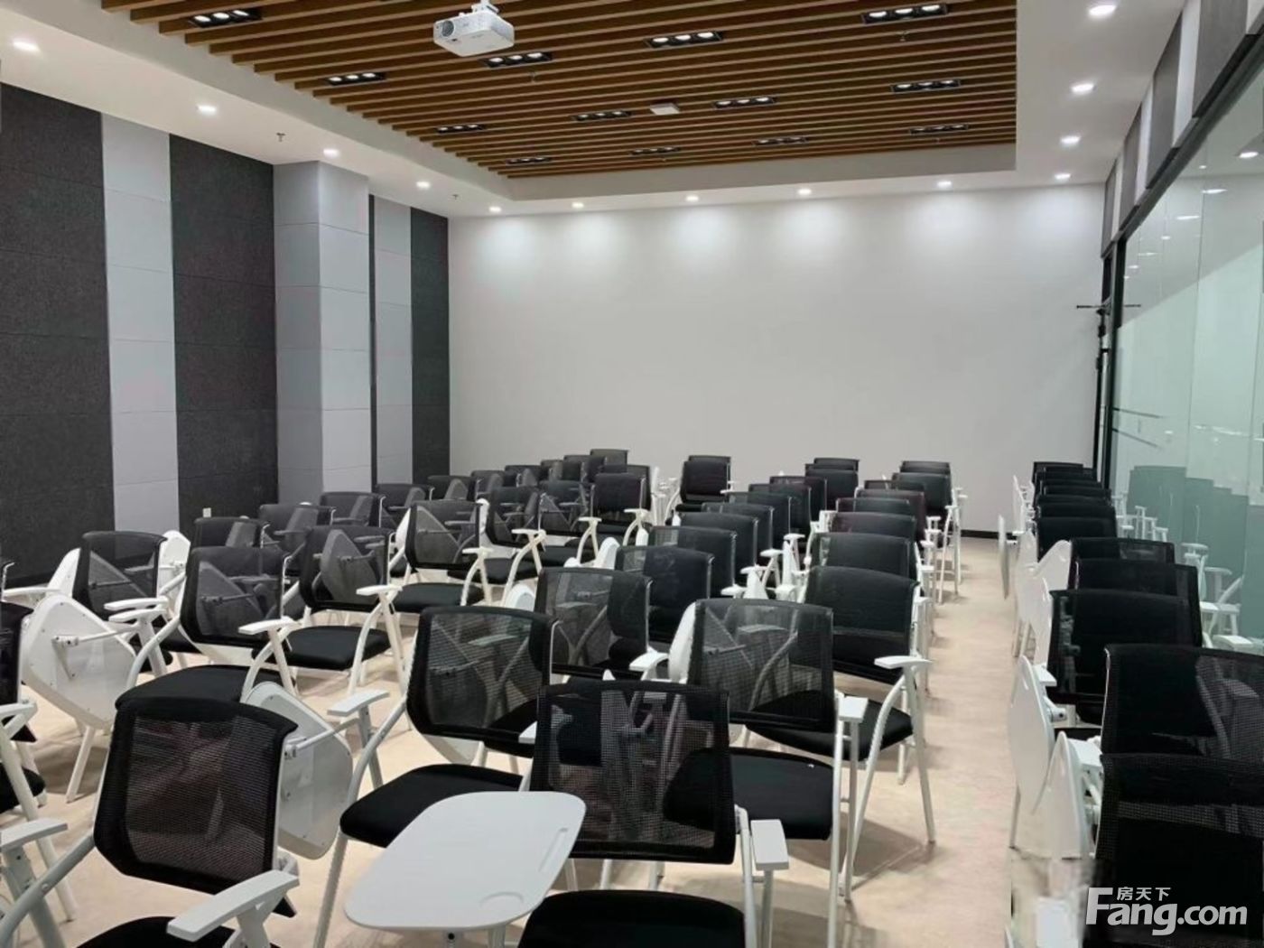 配套信息 1、餐饮:地下员工餐厅,一层1万平 2、空调:写字楼早8:30晚6:30空调供应 3、车位: 450元/月,临停2元/ 4、电梯:3部客梯,2部货梯 5、报告厅:园区配备可容纳400人的报告厅,可租用于发布会 年会等"
