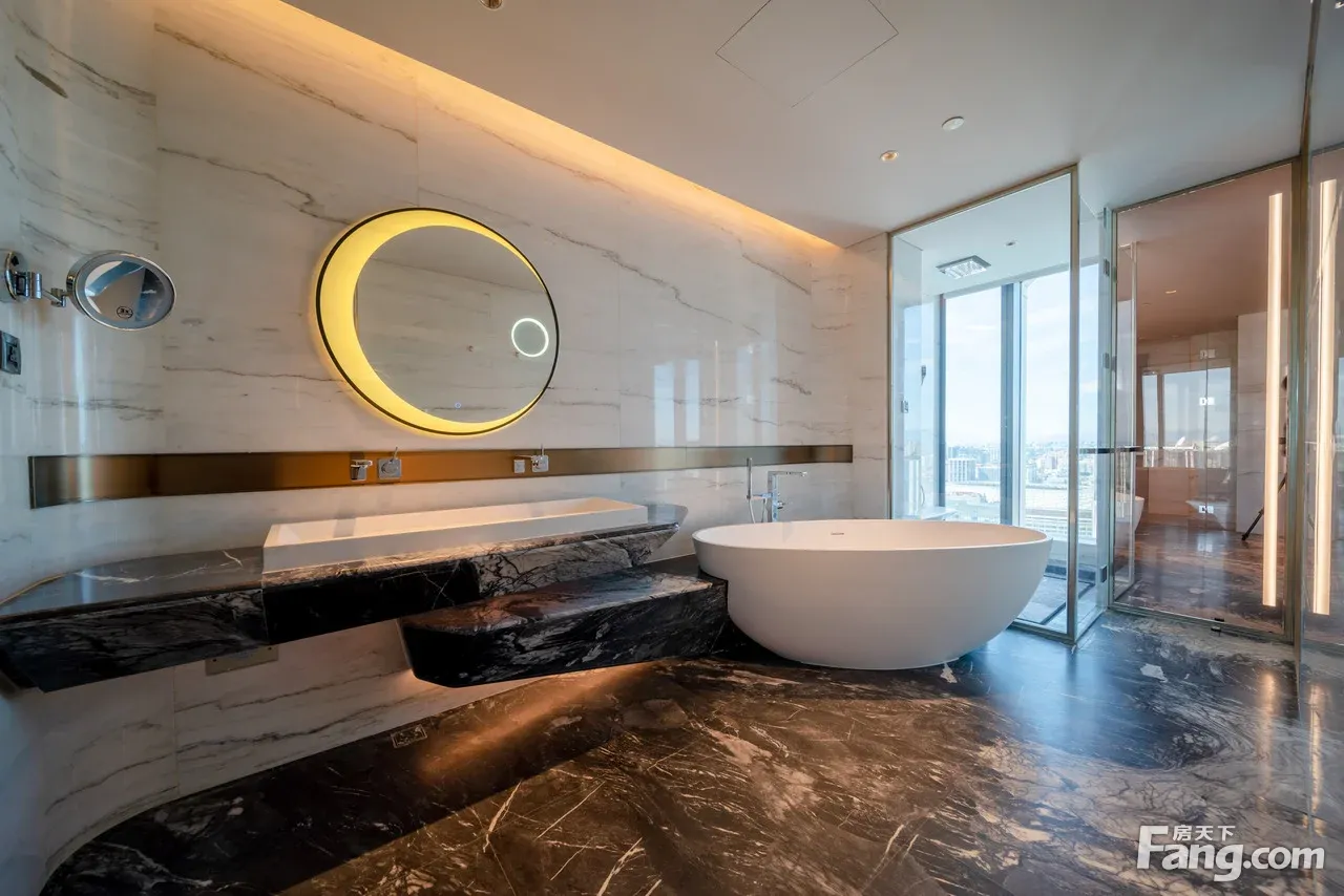 三里屯壹号位于三里屯通盈中心内,整座建筑拥有六边形的独特外立面,由全球具影响力之一的HOK建筑师事务所(Hellmuth Obtat Kassabaum)设计。作为地标建筑的三里屯通盈中心靠近东三环,高150米,地下4层,地上有36层。其中B1至6层是区,22层以下是大家熟悉的北京三里屯通盈中心洲际酒店;从24层开始则是48套全景,共享洲际酒店集团的设施和管理,坐拥270度观景。但以品牌命名的限量版户型,每款仅有一套,。今天意品居为大家介绍的三个顶奢户型设计,均由全球酒店室内设计排名Top3的香港郑中设计事务所(CCD)操刀。