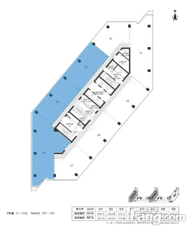 华贸中心甲级写字楼高层1000平 5元/平/天
