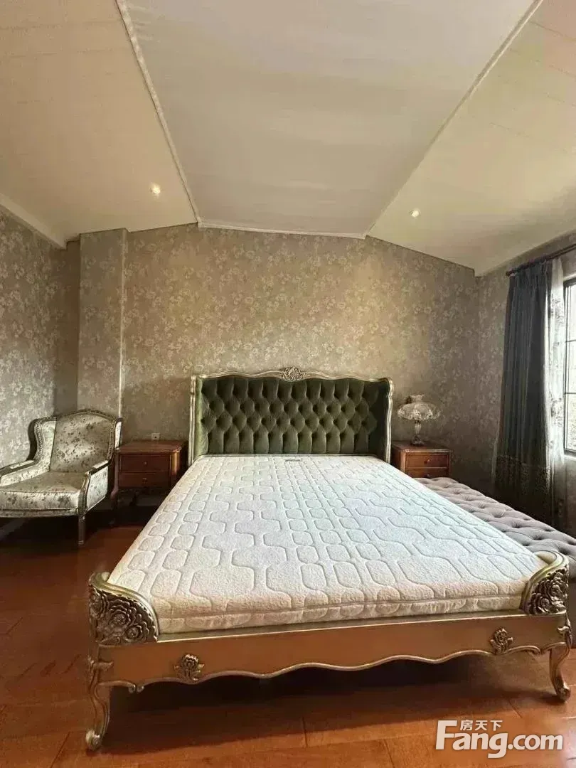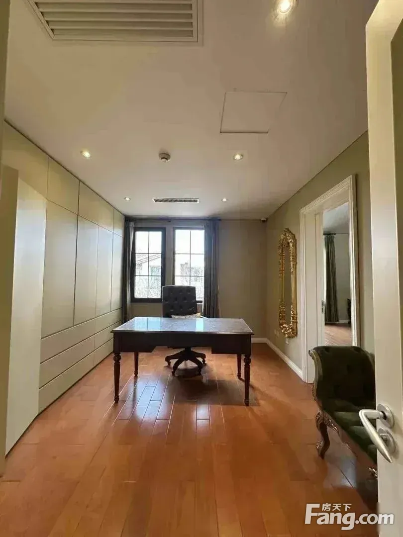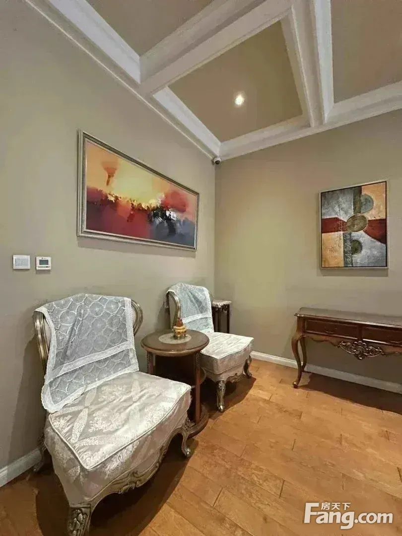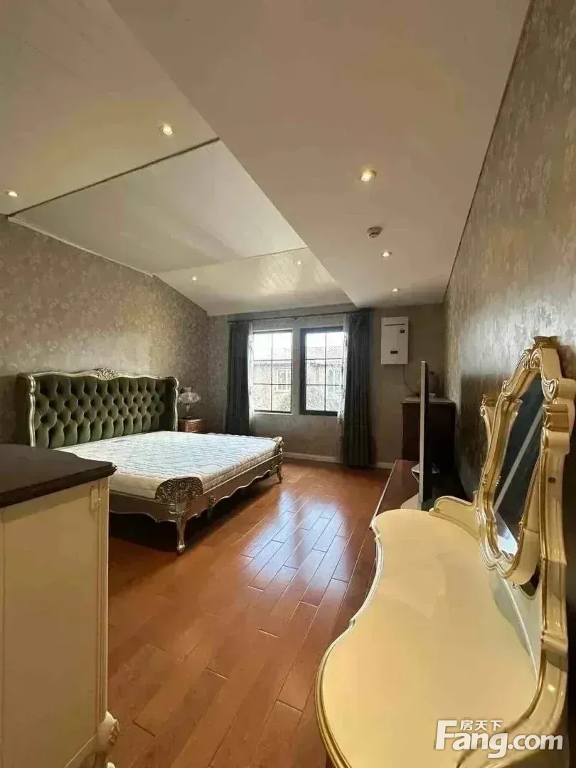 园区全部都是地上两层,花园层与车库层一致,相当于全在地上。 本房为园区的中间户型,南入户,五居室,有四个朝南,每层有厅,首层的厅和花园层的厅面积在60平左右,比较开阔。 花园朝南有40平左右,家具齐全,随时可以 起租。