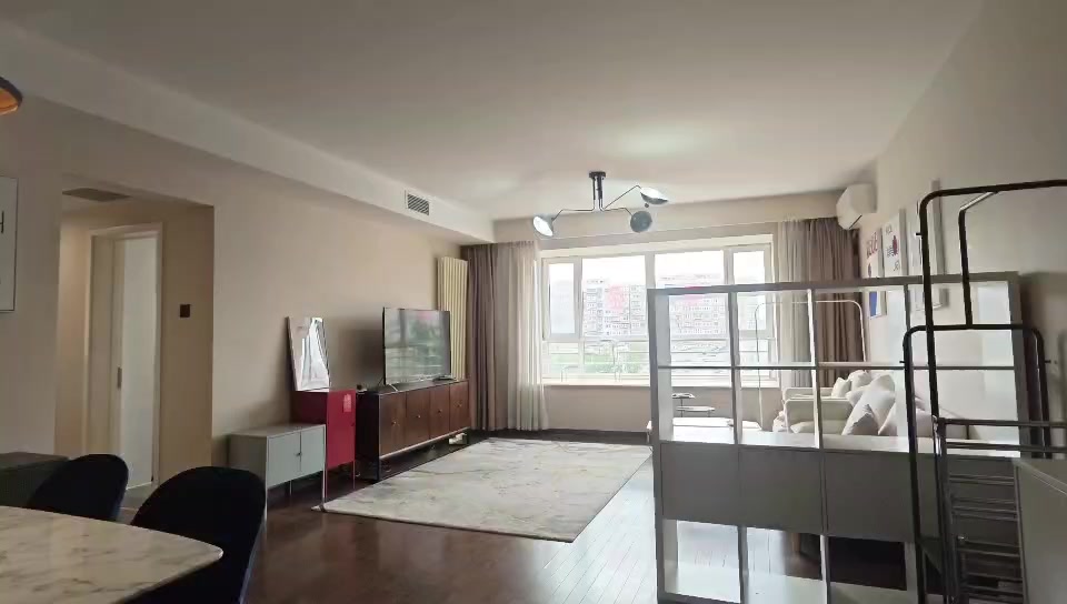 这套位于东直门核心地段的当代万国城精装两居室,建筑面积约125.99平米,采用南西朝向设计,采光充足且通风良好。房源位于低楼层,总层高27层,配备电梯,出入便捷。室内为精装修标准,格局方正,设有两间卧室、两厅一卫一厨,并带有双阳台,生活空间宽敞舒适。 小区地理位置优越,紧邻香河园路与香河园中街,周边交通便利,生活配套成熟。房源租金21000元/月,支持押一付三的付款方式,适合追求品质生活的租客。室内设施齐全,可满足日常烹饪、晾晒等需求,是东直门区域不可多得的优质租赁房源。