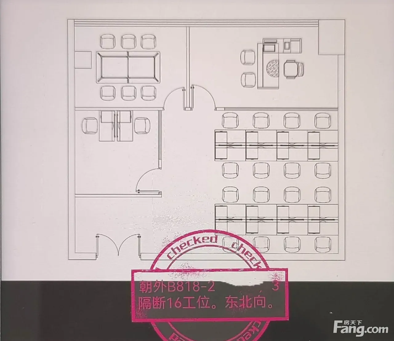 朝外SOHO B座 正对电梯 参考面积:197㎡ 参考价格:18000/月含物业取暖 格局 :3?16工位 朝向:东北 地铁:6号线地铁东大桥站