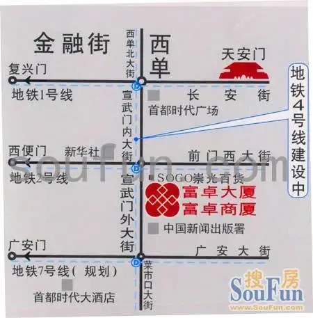 富卓大厦位于直接贯通长安街的宣武门大街,属于北京最为接近天安门的二环路内核心位置之一,北依前门大街,南临两广大街,4条地铁线路和20余条公交线路交织纵横,北京站和北京西站东西六公里内连通交汇