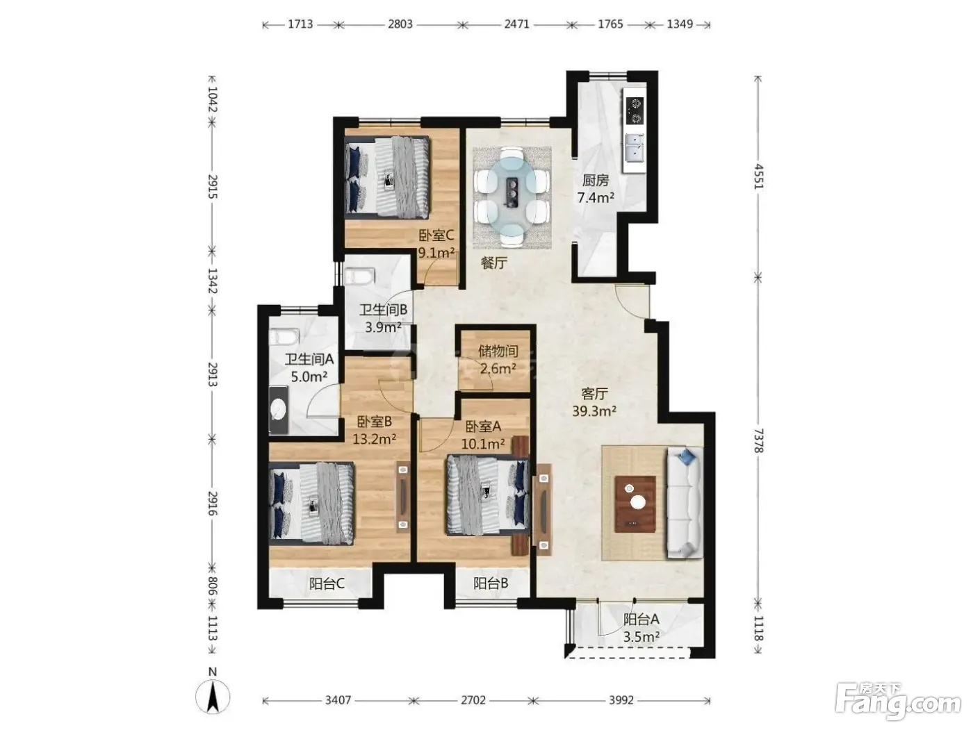 3室1厅2卫