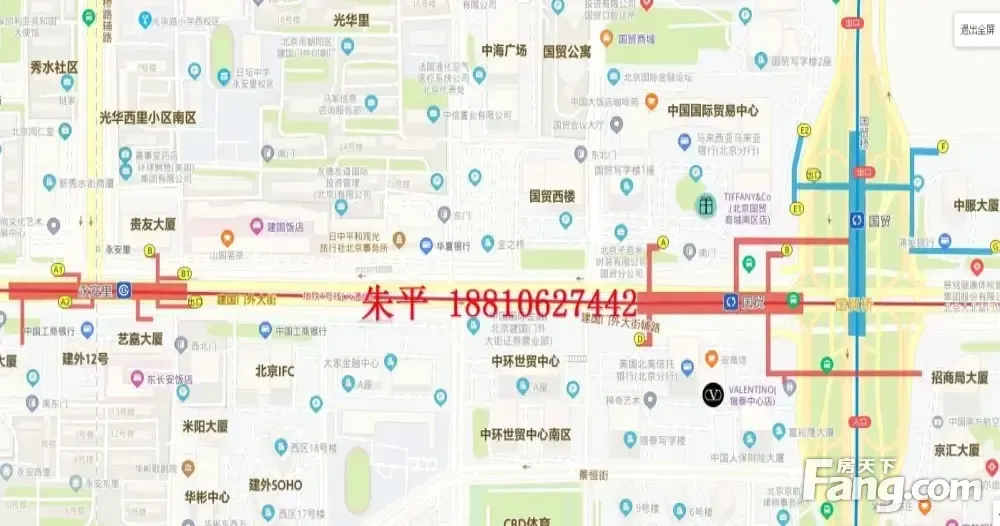 周边配套商业配套齐全、餐饮、银行、便利店、咖啡厅、生鲜超市 1.银行:工行、农行、招商、中信、兴业、民生、农商、广fa银行、北京银行; 2.餐饮休闲:快餐、商务餐厅、健身会所、商务酒店 交通出行地铁站近在咫尺, 3.周边多条公交线路贯通,出行便利,四通八达 交通便利、繁华商圈,国贸中心正對面,地处北京CBD的核心区域。得天独厚的地理位置,使其拥有無与倫比的便捷交通——现有的城市交通主干路包括:建外大街、建国路、东三环路、京通快速路、东四环路。12条公交线路在此设站,一线地铁国贸站距小区仅120米;规划中的滨河快速路(东便门-通县)经过小区南侧,串起海淀、朝阳、丰台三区的地铁十号线也将在