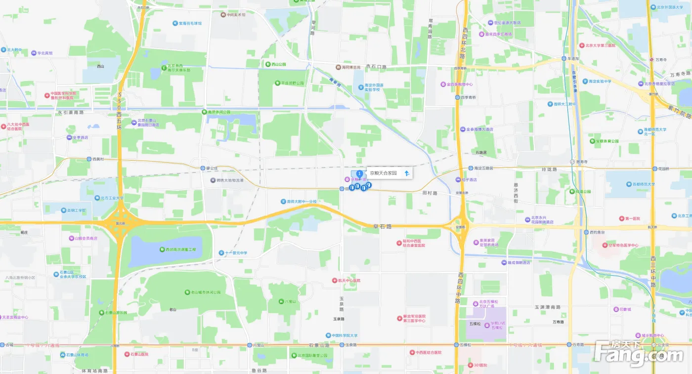 周边配套 商场:世纪金源购物中心、京西大悦城商场 学校:北京海淀凯文学校、首都师范大学附属玉泉学校、北京瀚林职业研修学院 医院:301医院、北京四季青医院、航天中心医院