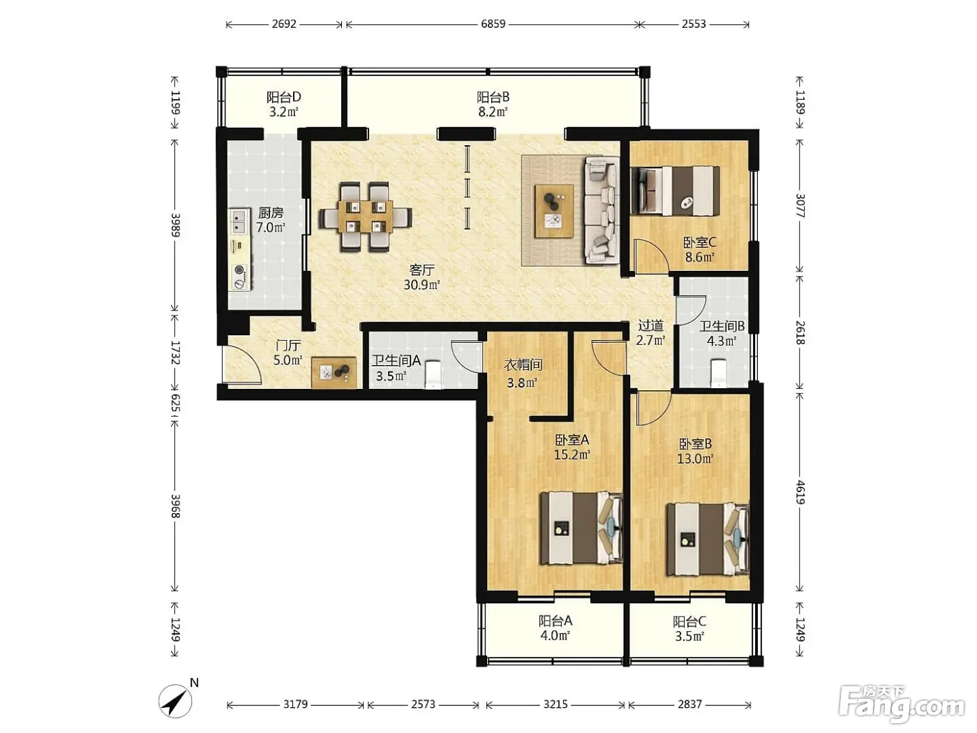 3室1厅2卫