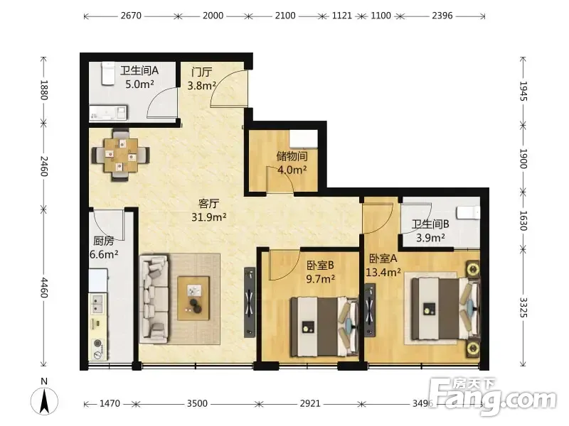 2室1厅2卫