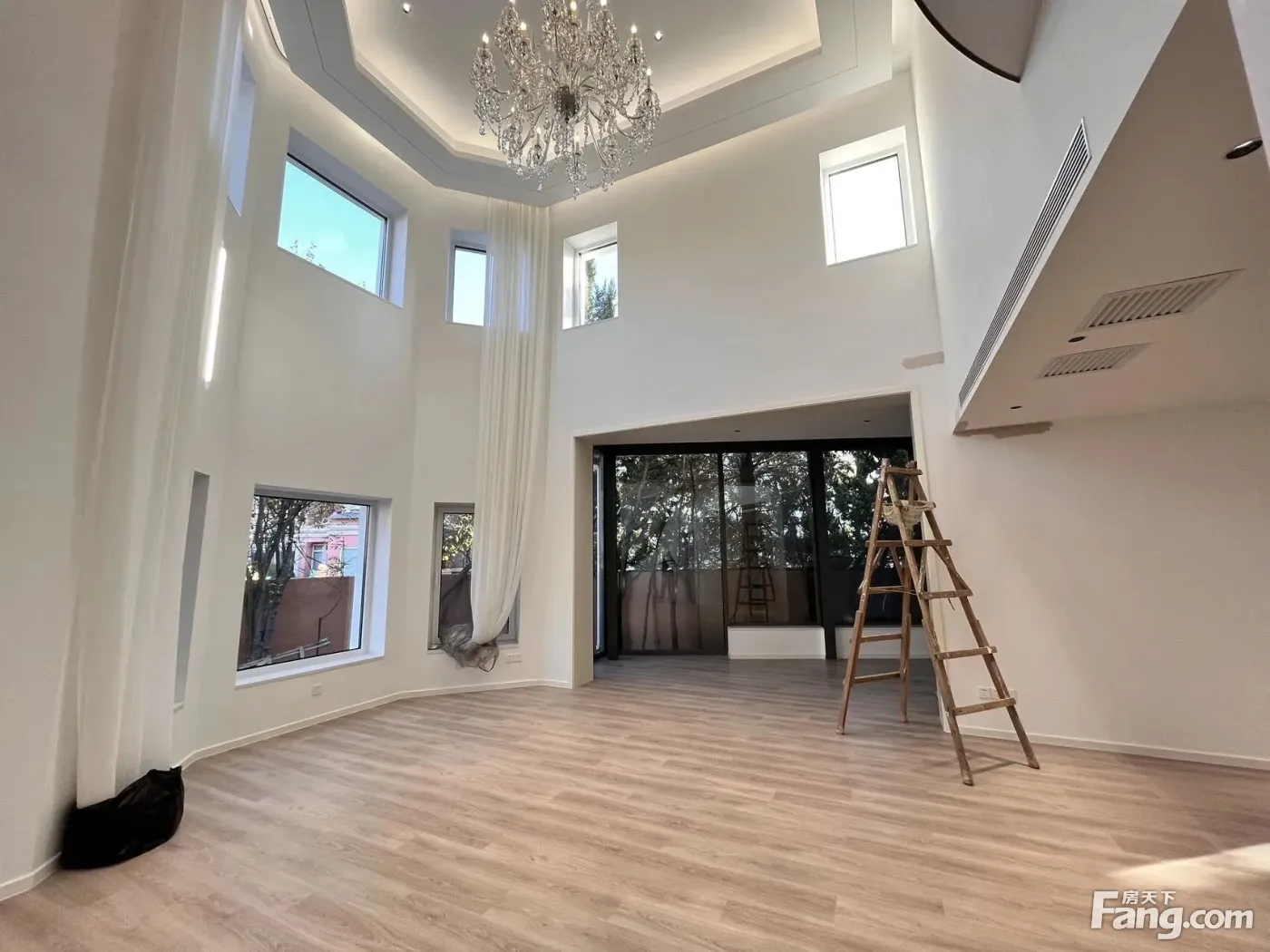 1、纯地上2层独栋,使用600平左右, 2、社区单排把边位置,三面超宽楼间距,无遮挡,视野采光好; 3、室内6米挑高大客厅,以及室内5居室布局; 4、室内2023年全新装修,简约风格,可直接入住