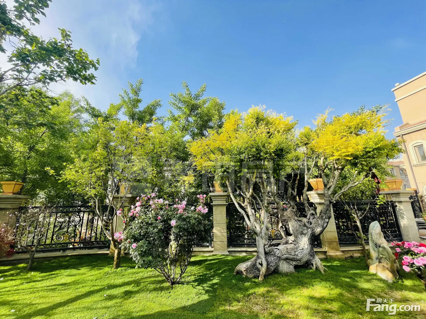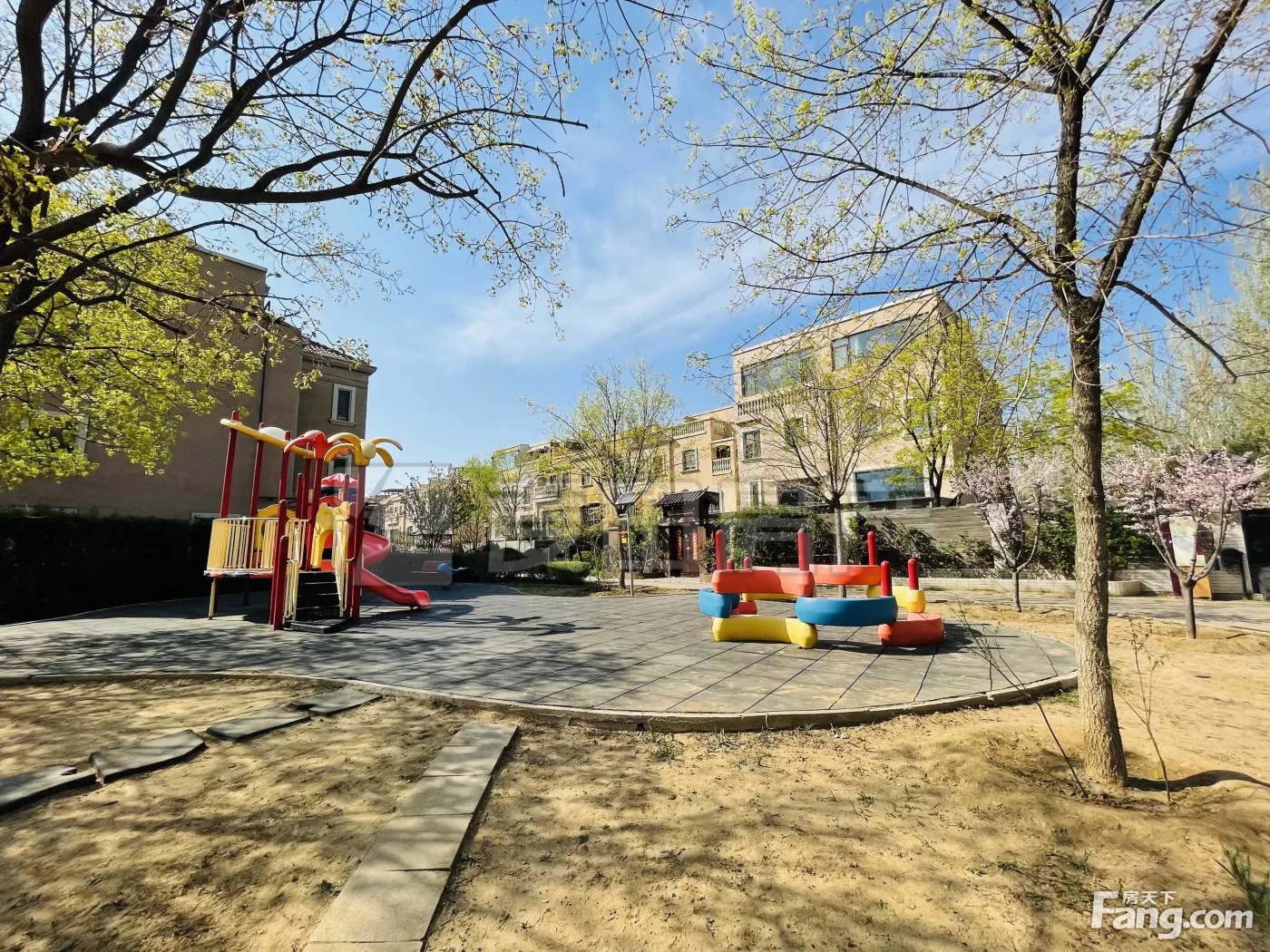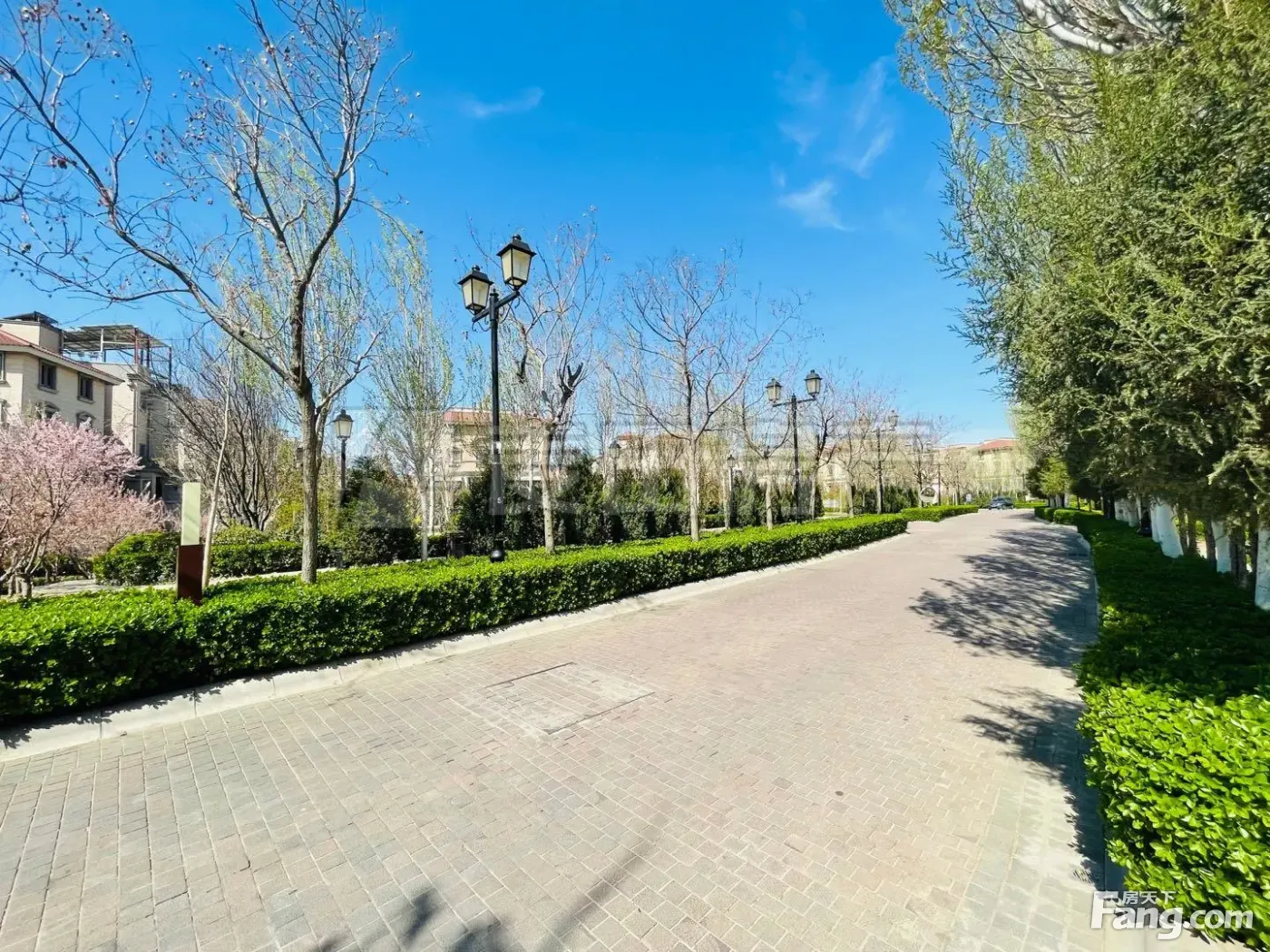 —期整体采用的涂料的外立面,浓郁的西班牙风格。园区绿化程度较高,整体环境雅致,自然舒适.邻四季不结冰的温榆河北岸,风景秀丽,园区内有喷泉、过河桥、绿植花卉等景观,绿化程度较高,人文气息与自然景观相融合,给人以自然舒展的感觉;路边、楼栋间都种有品种繁多,色彩缤纷的花草以及高大茂密绿树,使社区生机勃勃,空气清新,适宜居住。