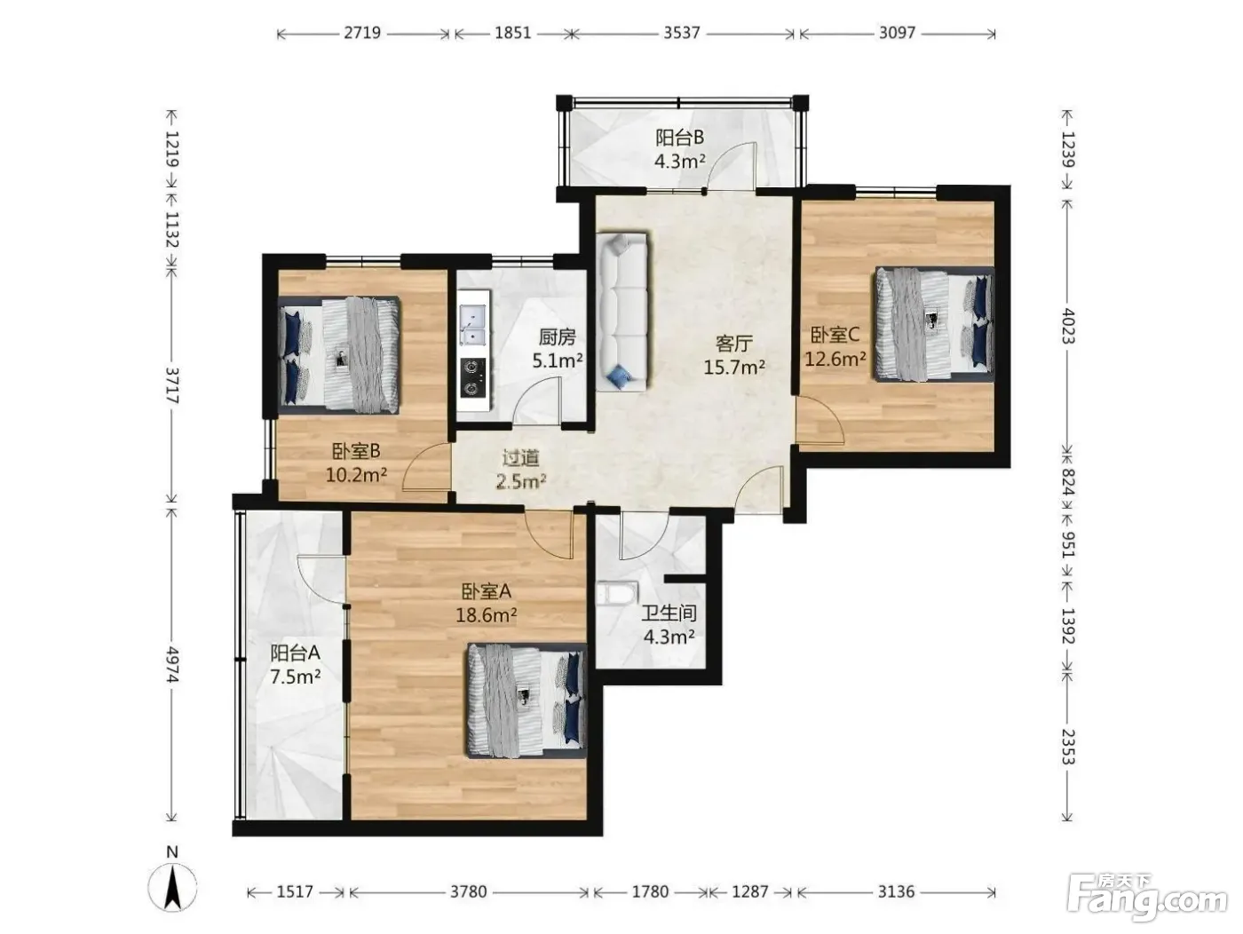 3室1厅1卫