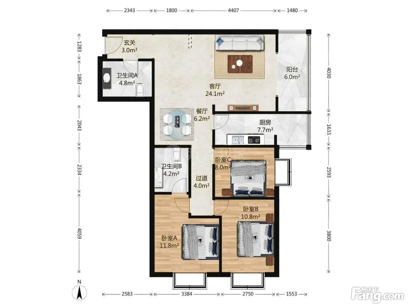 3室1厅2卫