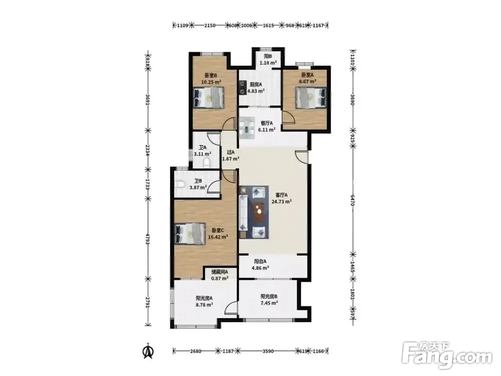 3室1厅2卫