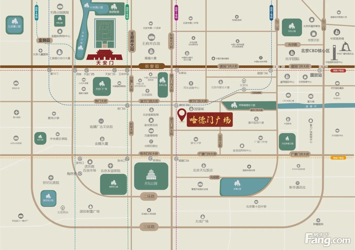 交通优势:地铁2号线、5号线交会崇文门站地铁上盖(负一层直通地铁)