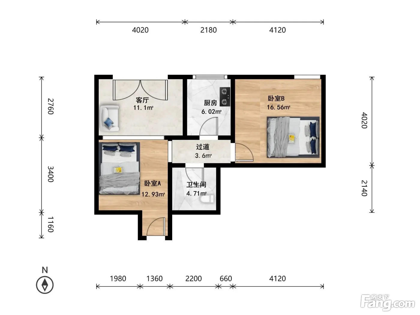 整租·豆各庄·富力又一城A区·2室·1厅