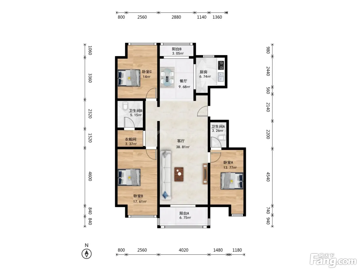 3室1厅2卫