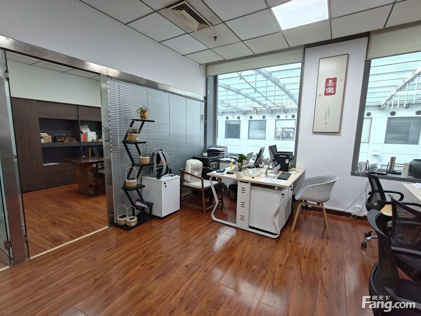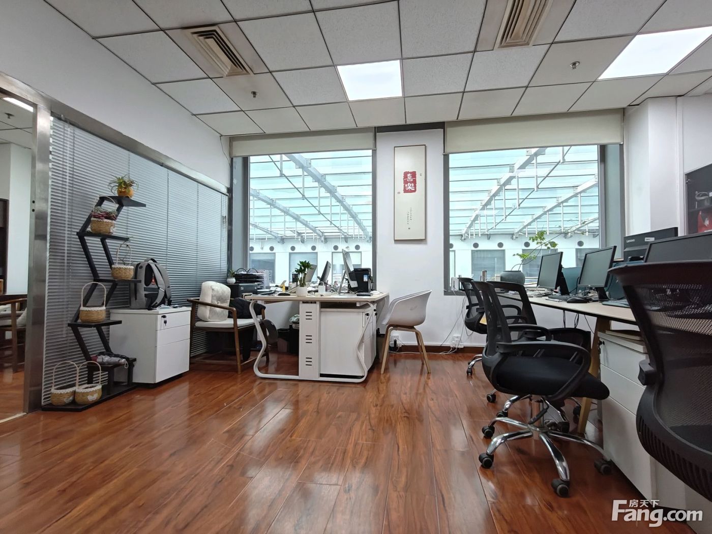 项目:天创科技大厦 面积:91平米 单价:3.5元/平米 装修:精装修,一个老板间,一个财务室,一个开间工位区