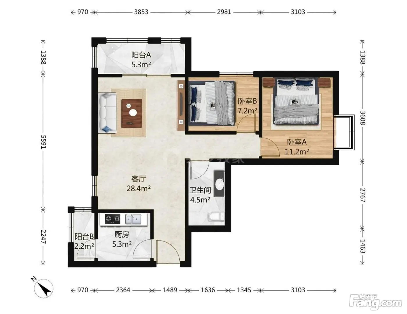 整租·长阳·加州水郡西区三期·2室·1厅