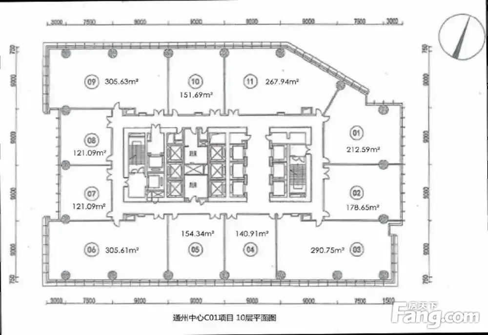 【物业管理公司】 北京世邦魏理仕物业管理有限公司 【总体量】 总计约60,215.25平方米(6层及以上区域) 办公面积约57,368.74平方米(9-36层) 商业面积约2,846.51平方米(6-7层) 【总高度】170米 【总层数】地上36层,地下4层 【电梯系统】12部日立客梯,2部日立消防服务电梯,2部转换梯 【单层面积】1,096.41-2,290.41平方米 【标准层柱间距】7.50-9.00米 【标准层层高】4.2米 【标准层净高】2.9米 【电力供应】双路供电100瓦/平方米(含空调负荷) 【交付标准】公共区域精装,办公吊白网交付 【卫生间配置】男卫:3洗3站3坐,女卫:4洗4坐,25层以上设有行政卫生间 【起租面积】120㎡起,面积分割灵活 【签约年限】3年起租 【付款方式】押三付三 【物业管理费】32元/月/平方米 【地铁站】地铁6号线北运河西站,B口步行100米 【绿色认证】LEED金级认证
